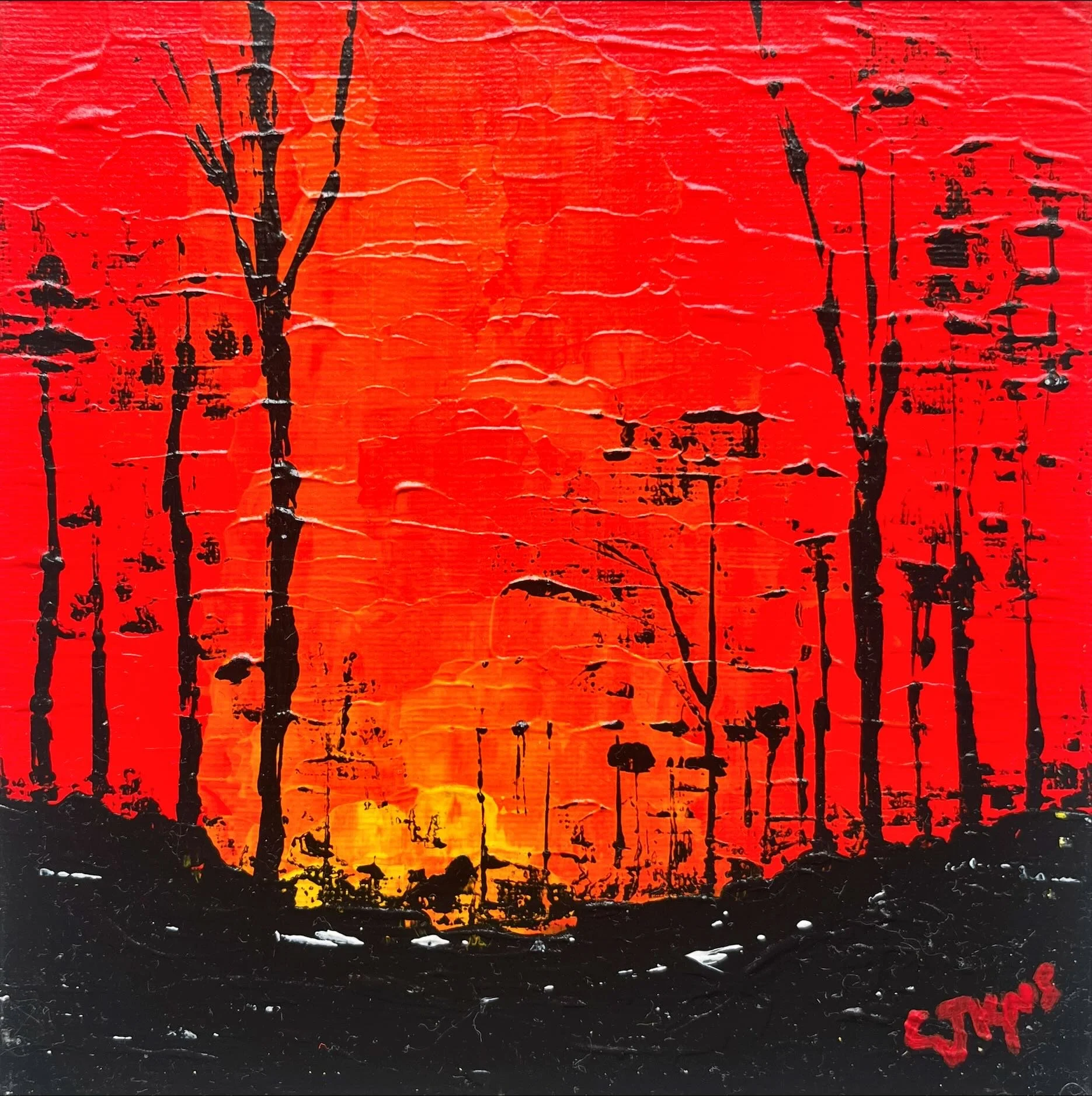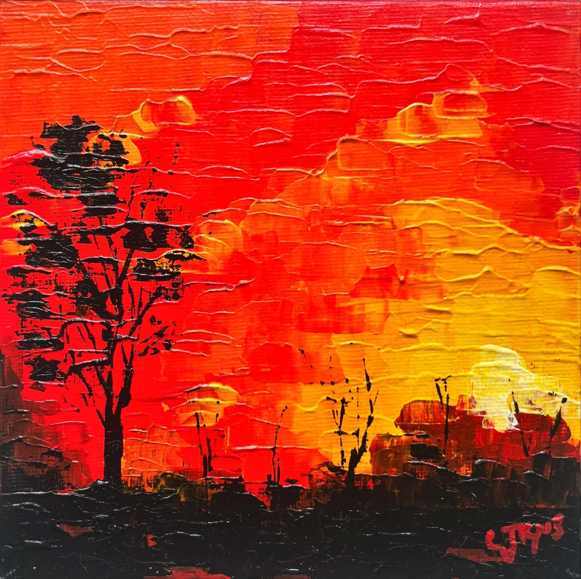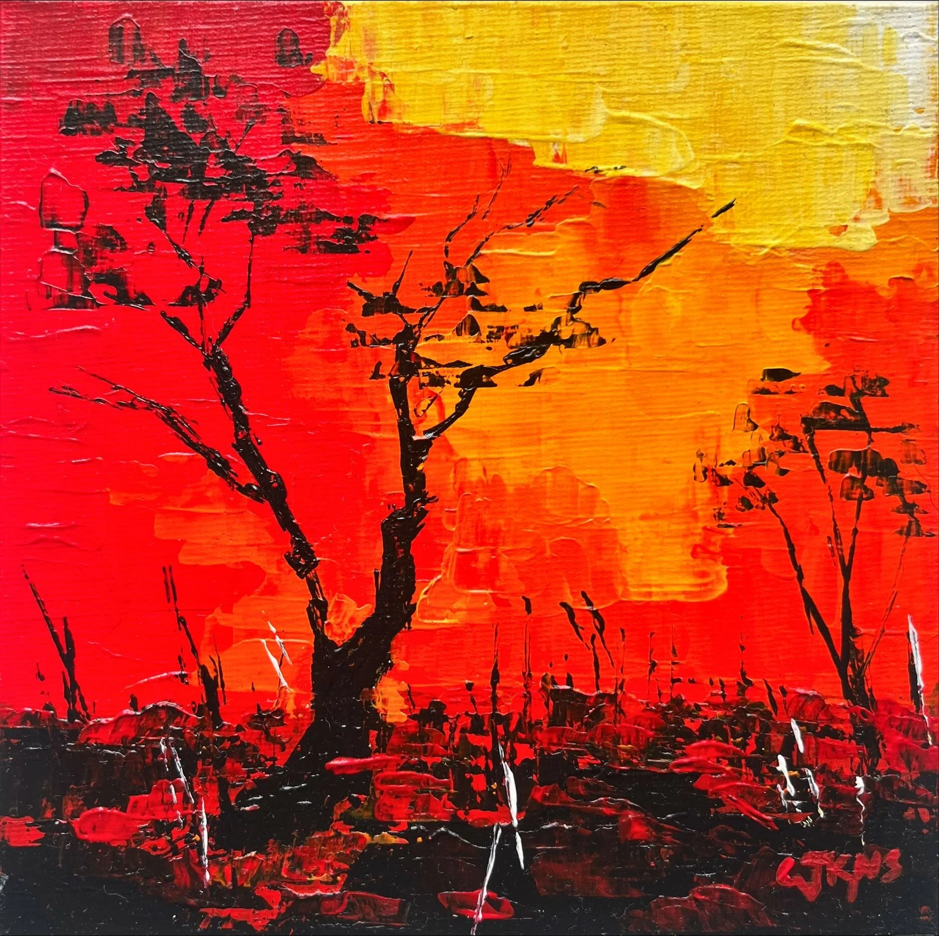 This is another series that began as a personal project but ended up teaching me that I can’t predict what is going to connect with my audience. I painted these while reflecting on the 2009 Black Saturday bushfires in Victoria. I was 13 then and living with my family in the small town of Kinglake. I remember the incredible heat that day and seeing the large cloud of smoke in the distance. I remember hearing the lady next-door speaking with my parents, telling them that we needed to make a decision soon. Her ex was a firefighter in a nearby town and had called to warn her.